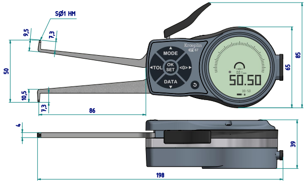 - Rodzaj końcówki pomiarowej: kulka Ø 1,0 mm - HM węglik spiekany