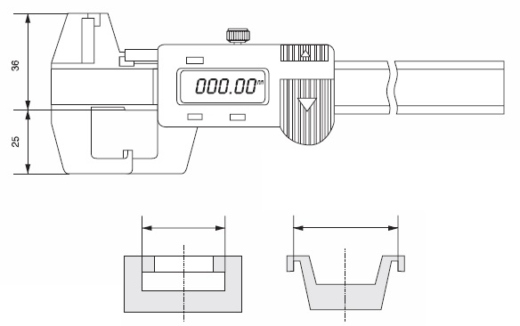 Profesjonalna suwmiarka elektroniczna z górnymi i dolnymi szczękami. Zakres pomiaru 0-125 mm, rozdzielczość 0,01 mm. Konstrukcja suwmiarki została przystosowana do pomiaru w trudno dostępnych miejscach, takich jak: wewnętrzna średnica kołnierza, szerokośc rowków i odległóść miedzy nimi, pomiar wysokości itp.